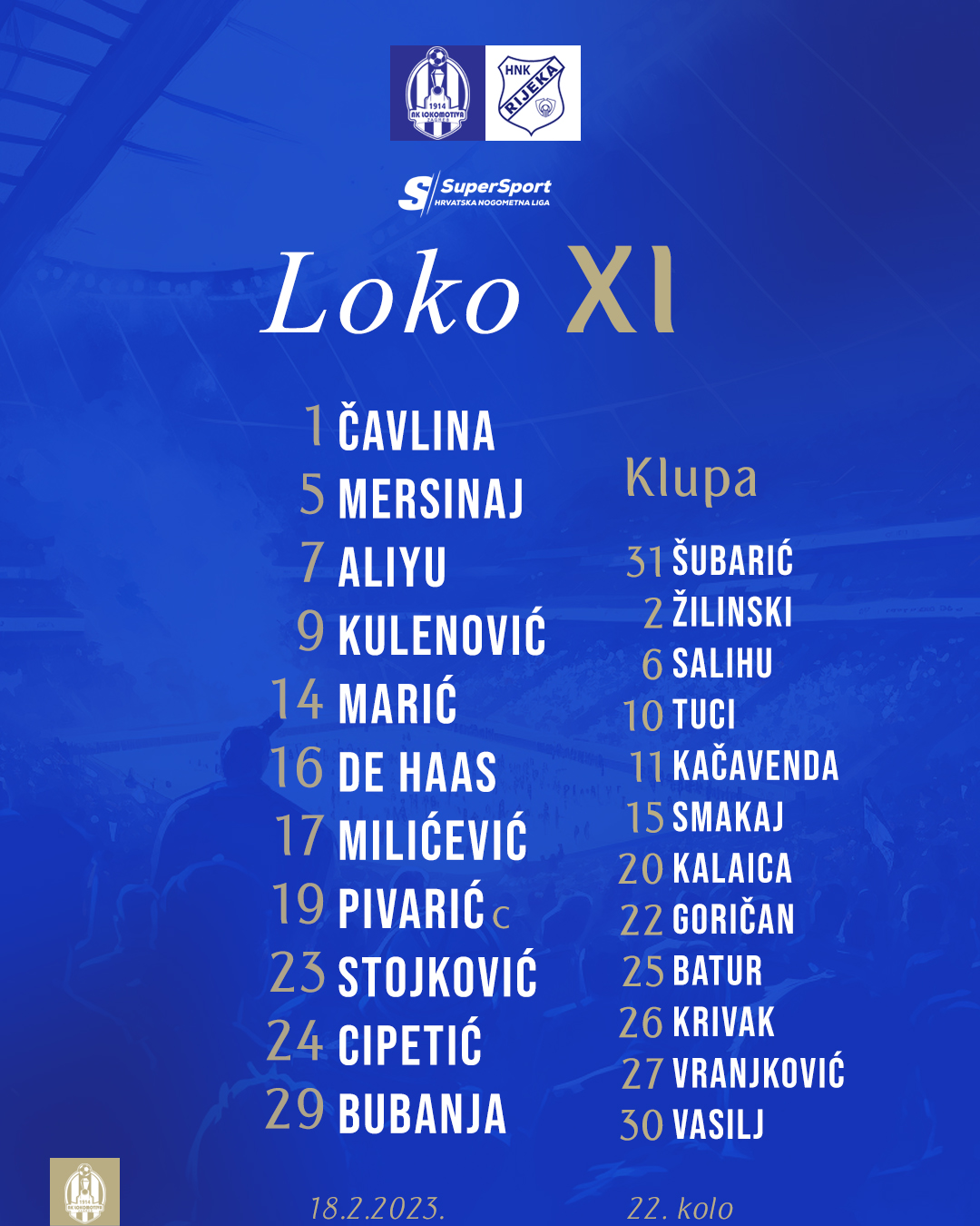Lokomotiva je nakon dvije uzastopne pobjede, protiv Osijeka u Kranjčevićevoj, te Šibenika u gostima, u subotu dočekala Rijeku u Kranjčevićevoj. Svoje sjajne prilike, posebice u prvom dijelu,nismo realizirali, sve do sudačke nadoknade gdje Marić postiže počasni pogodak, tako da upisujemo drugi poraz ove polusezone.