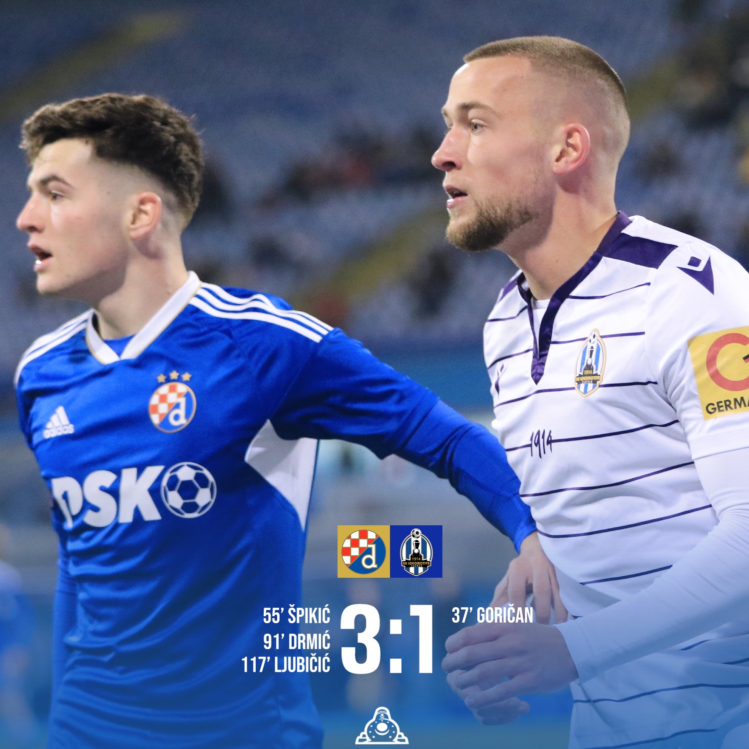 Na početku prvog produžetka, Dinamov Drmić je nakon minute u igri poentirao za preokret Dinama. Ljubičić u 117. minuti postiže gol te stavlja točku na i za prolaz Dinama u polufinale SuperSport hrvatskog nogometnog kupa.