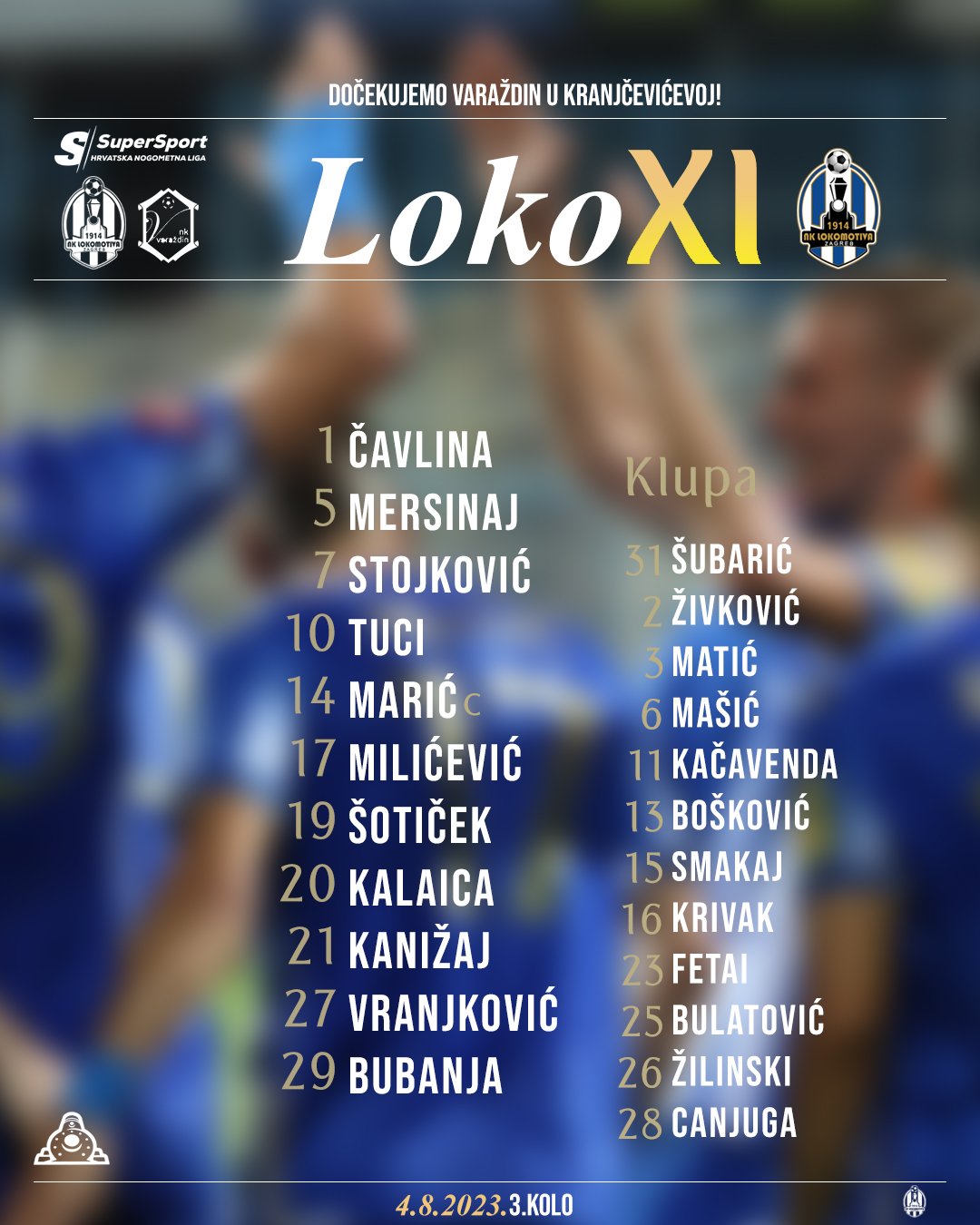 Klupa: Šubarić, Živković, Matić, Mašić, Šotiček, Bošković, Smakaj, Krivak, Fetai, Bulatović, Žilinski, Canjuga