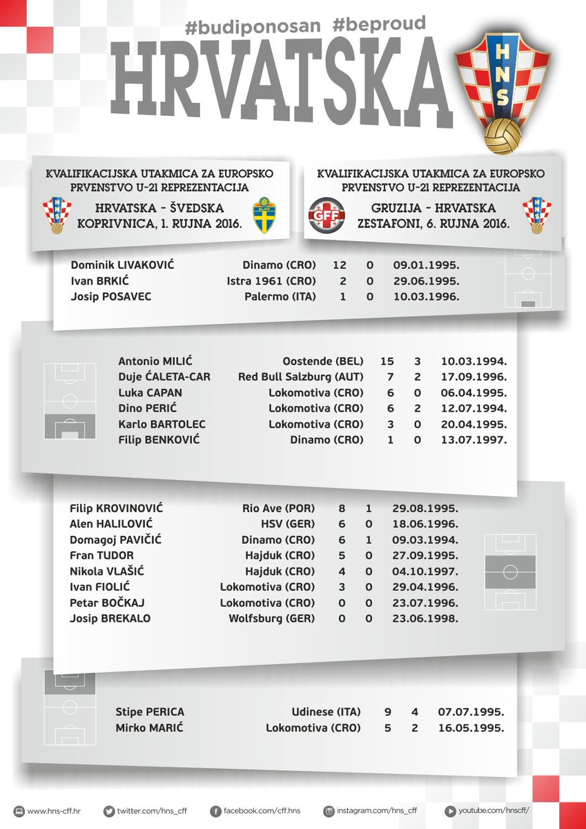 Iznimno smo ponosni što je čak šest igrača Lokomotive dobilo poziv u U21 reprezentaciju! Čestitamo Periću, Capanu, Bartolecu, Mariću, Bočkaju i kapetanu Fioliću na pozivu, te im želimo puno uspjeha u nadolazećim ogledima protiv Švedske i Gruzije!